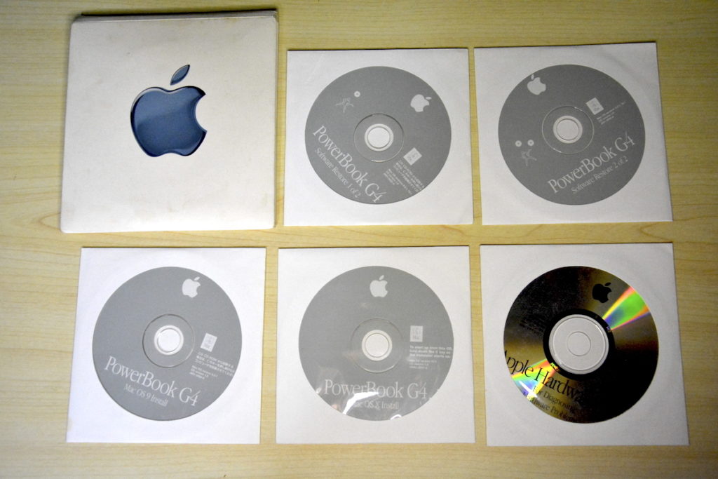 電源アダプタとリカバリメディアです。電源アダプタはPowerBook G4 アルミニウムのものが使い回せるので、個人的にはそれほどでもないのですが(とは言え、かなりありがたいです!)、リカバリメディアはホントにありがたいです。