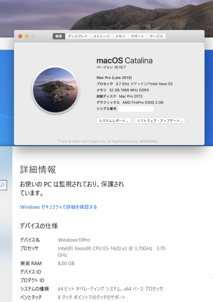 そのWindowsを入れてるMac Pro 2013がウチに来て6年、出荷からだと8年くらい経っていて、そろそろ壊れた時の対策も考える必要が出てきたからです。