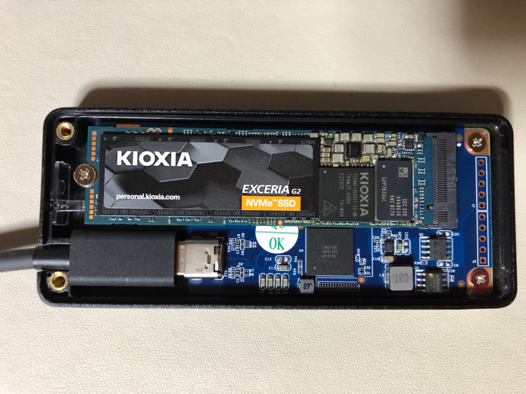 国産SSDのKIOXIA(リンク先:Amazonアフィリエイトです)。1TBで6,000円ちょっとだったかな?