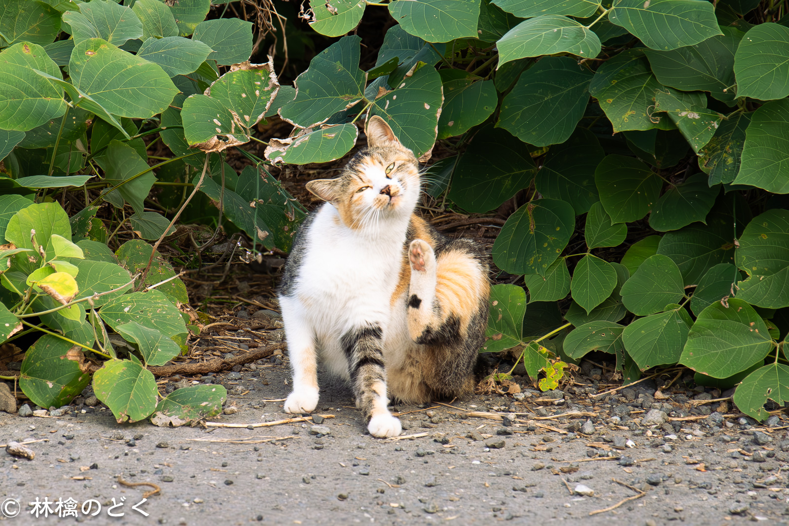 よく行く場所で、ノラネコをよく撮っています(場所はナイショです)。