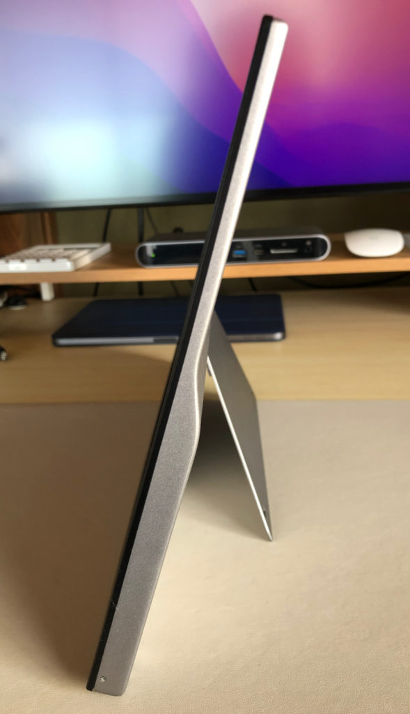 調べた時は大半のモバイルディスプレイはスタンド機能付きのカバーが付属していて、ディスプレイ単体で立たせることができる製品を見つけられませんでした(あるとは思いますよ)。